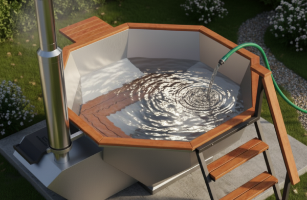 Количество воды в купели напрямую влияет на время нагрева, расход дров и комфорт при купании.